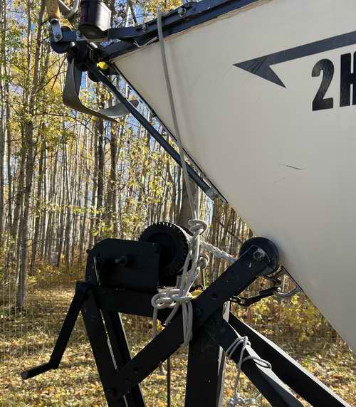 LAUNCH AND RETRIEVE In an ideal world the trailer is level with the surface and at the correct depth while on the ramp so the hull can float over it, centered by the guide posts. Then the bow line is attached to the trailer winch, pulled in snug and the trailer is pulled up the ramp with the boat perfectly placed on the support bunks. Now wouldn't that be nice? This is basically what the operator at a local marina does using a tractor equipped with a 3 point hitch (up/down adjustable). This slick system works so well that many boaters no longer use the crane for launch retrieve. Many boat owners are happy to pay the nominal fee. The advantage is they are no longer restricted to crane day, being able to launch or retrieve on the their own schedule. NOTE: The SJ23 manual has a segment on