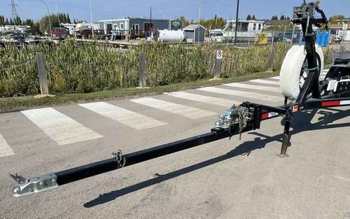 With an SJ24 I've decoupled the trailer from the vehicle and attached a chain leash from the tongue to the tow vehicle then pushed the trailer down the ramp until the boat floated free. This is not as difficult as it sounds if the trailer has a wheel at the front that doesn't turn. When the boat floats off, retrieve the trailer with the chain and recouple to the tow vehicle on level ground. You could use the same method with the SJ23. Keep sailing. Gleno TOP TRAILER TONGUE EXTENSION for SHALLOW WATER LAUNCH (DIY Version) - I recently helped Ron haul out Siesta, his SJ23, and discovered that he used an extension bar. Connecting his style extension is easier with 2 people. It requires only 1 bolt and the trailer coupler to secure it to the trailer tongue. There is so much leverage on this 6' bar that it was easy to lift to the truck trailer ball by hand. This system worked well on our 100 sloped ramp with his truck wheels stopped at the water line. The trailer never rolled off the end of the ramp.