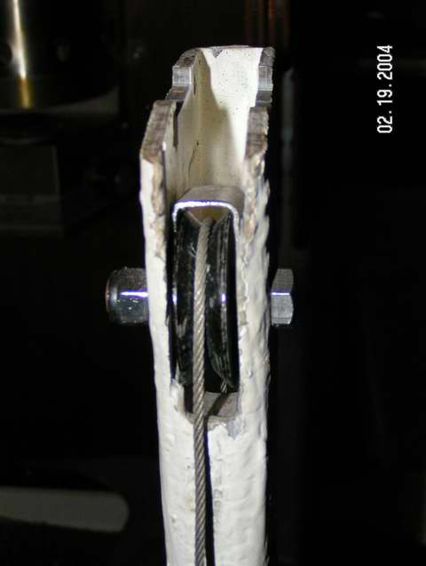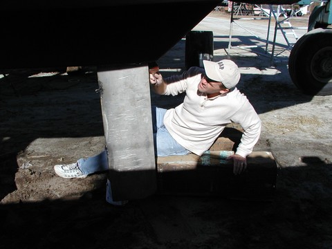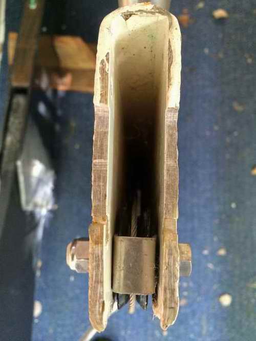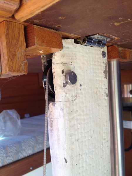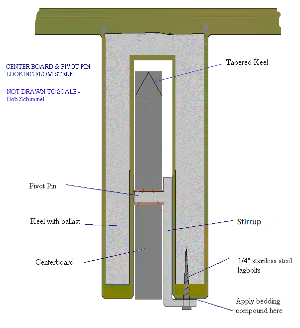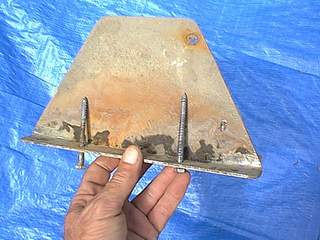 - Remove the lag bolts and pry the stirrup plate down, taking the centerboard with it. Seal the lag bolt holes immediately.