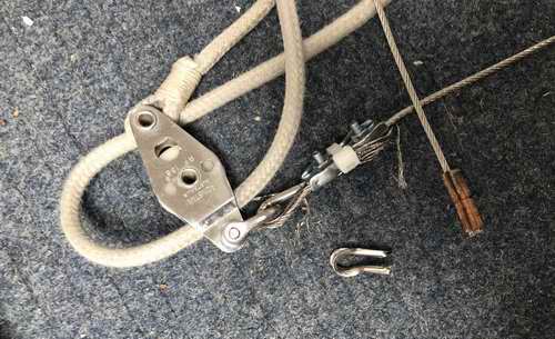 1/8" halyard grade (7x19) SS lift cable, factory installed, that must be replaced on a regular basis.