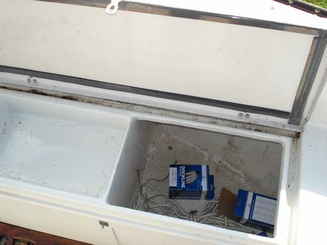 The starboard cockpit locker comes from the factory about 6" deep. This shallow depth is perfect for