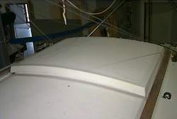 Make a new slider (sky light) from 1/2" thick acrylic. Match the tint to the colour of the forward hatch or use a pale blue or smoke colour. Do not use clear acrylic due to the heat gain and the fact that it shows scratches too easily. A new acrylic slider might be a challenge to make due to the curve of the cabin roof. To obtain a matching curve in the 1/2" acrylic, it is necessary to heat and bend it. The required temperature is easily reached with an outdoor gas barbecue. A commercial pizza oven would be perfect, but do you know of a pizzeria willing to loan their oven? Instead, make your own temporary oven to place on top of a barbecue.