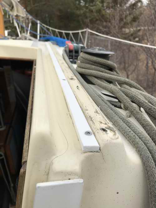 hatch is closed, the down turned forward edge laps only slightly over the sill at the front of the companionway opening. This creates a poor seal, letting water or rain with any