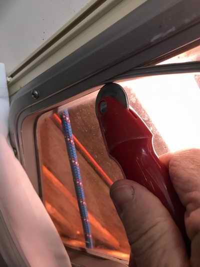 between the aluminum frame and the hull, then the entire window assembly should be removed