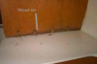 and starts wood rot, especially with poor ventilation in the cabin. The wood rot usually appears at the bottom