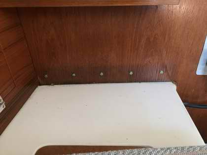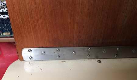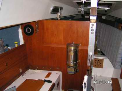 fibreglass joint (to the hull) of the fibreglass bulkhead at the front of each settee. This joint likely fails due to the trailer bunk bearing on the tape to flange joint. Every bounce down the road works the tape bond loose. It is a common failure on trailerable boats. If you want to bond this joint, wash it with acetone then slip a layer of fibreglass cloth saturated with epoxy in between or just lather in some thickened epoxy. Then squeeze the whole works between two layers of plywood to ensure a tight bond. A couple of bolts drilled through will squeeze the sandwich. Once that tape joint fails enough to allow a