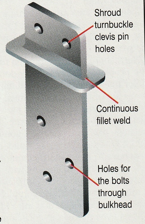 WELDED CHAIN PLATE - If the deck plate is welded to the chain plate the sealant underneath is only subject to a shear load, thereby remaining sealed. This technique eliminates the deck screws to hold plate down and effectively ends future movement with consequent leaking.