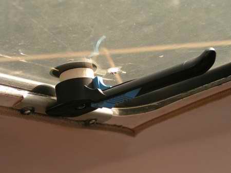 When buying Lexan be sure to specify MR-10 coating that makes it resistant to scratching and UV). If you more strength than 3/8" acrylic, use 1/2" Lexan and install a couple of 1/4" thick spacers under the deck side of the hinges so the Lexan lies flat on the hatch seal. Despite the controversy around the choice of materials, I would choose Lexan with MR10 coating to replace the forward hatch. This would be my current choice if I have to replace the hatch. Good luck finding the smoke tinted stuff. It was very popular back in the 70s when most plastics shops carried it in their inventory. Today (2006) you will have to buy a whole (4x8)' sheet for $600 CA just for your (2x2)' hatch. Share the cost with somebody on the skipper list or consider tinting the clear stuff at an automotive shop. 2018-08-12 - I