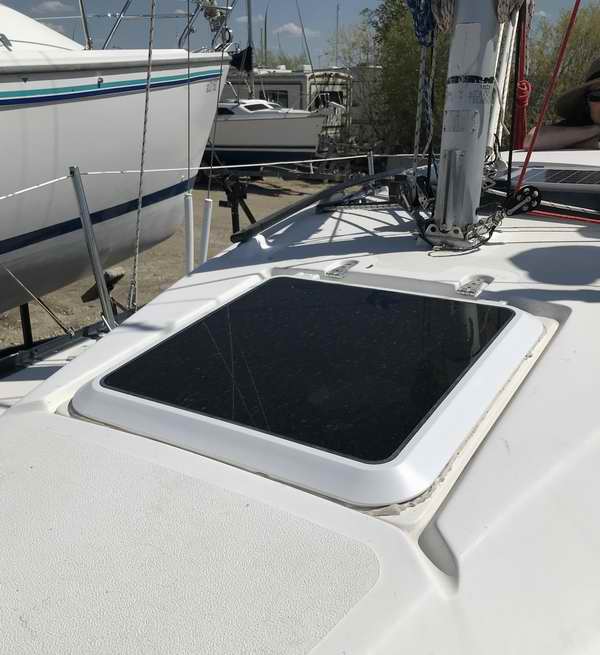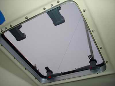 LEWMAR OCEAN 60 HATCH - This Lewmar hatch is a very neat installation. It requires a 20" by 20" hole, only slightly larger than the factory acrylic hatch requires. After