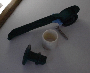 TAYLOR LEVER HANDLE - Well time, patience and friendship has paid off. While I was building a prototype lever handle, my sailing buddy Doug found some very suitable handles on the web at a reasonable price; Taylor stock # 1731. The advantage of people working together to solve a common problem. The handles fit on an SJ23 acrylic hatch with very little modification to the existing hardware. The best part is that they can be operated from the outside if the handles are purchased with the exterior thumb levers.