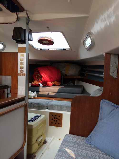 At right is the forward cabin lit up with the new clear hatch. Notice how bright
