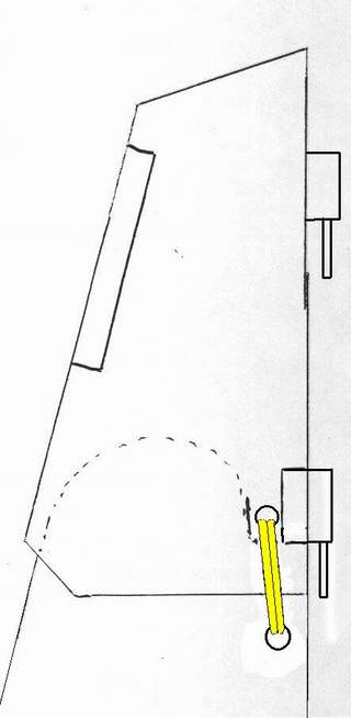 2004 - After fours years of use with my block and tackle blade pull down system the blade has some unexpected wear around the pivot hole and in the pull up bolt hole where the T-bolt rests. So I've developed a more robust solution for both and updated the text and diagrams as per below. The rudder has experienced no fatigue since then. _________________________________________________________________________________________________________________ There are two rudder versions for the SJ23, fixed and kick up. The fixed version is for sailing in deep water where you seldom or never expect the bottom to come up to 'touch' the hull. The kick up version is for sailing in shallow water where the "bottom may occasionally come up to touch" the hull. The kick up version has the additional safety advantage of protecting the blade and the transom in the event of an accidental grounding. This same safety feature also allows the party animals to hit the beach by allowing the sandy bottom to push the blade up. Notice I said sand, NOT ROCKS! I don't know about anybody else, but I've never been able to lift the blade by hand as I approach the beach. I find the reach into the murky depths just a wee bit beyond my hands! The factory designed kick up rudder (shown below left) incorporates several loops of heavy duty bungee cord at the leading edge of the blade hinge. The purpose of the bungee cord is to hold the blade down for normal sailing and allow the blade to be kicked up in the event of a grounding. The bungee cords are looped between two holes at the leading edge of the rudder hinges; a 1" hole through the top of the blade and a 1/2" hole through the bottom of the rudder head. This was the configuration when I bought Panache. For assured performance, the bungee cord must be replaced annually. What a pain for a system that doesn't work well! There are several drawbacks to the bungee cord system;