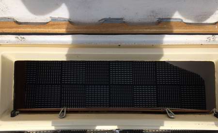 On Panache I made one that fills the top half to rest on the bottom acrylic. The top one has a tough screen that can stop the squirrels that have shown up recently. This screen will work in conjunction with a similar one on the forward hatch, all to maintain ventilation. If the cabin was dry before, it is even drier now.