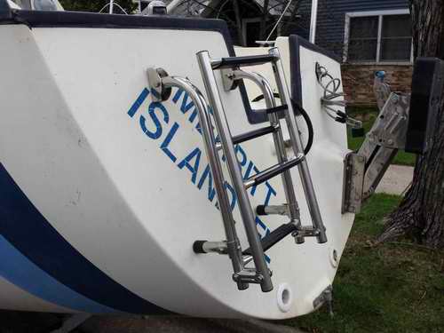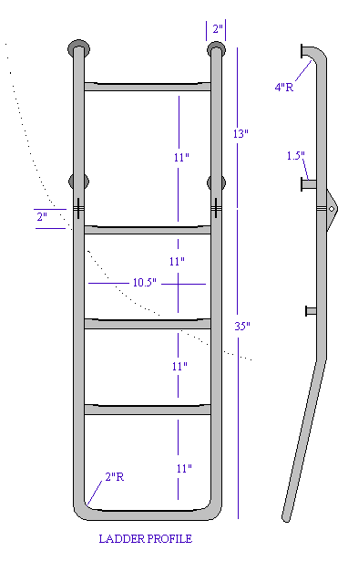 ALAN'S LADDER (2014) - Alan Weld installed a new ladder to Elizabeth Jane's transom in 2014. The installation was simple; drill four holes, seal them and insert hardware. Other ladder owners report this model has held up very well over the years.