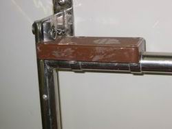 The best feature of this ladder is that it reaches very deep into the water to ease that first step up out of the water. This is the most difficult step. Many ladders fall short in this category, no pun intended. In addition, the 7/8" OD tubing is very strong, even on dry land. When flipped up, the bottom step is level with the top of the pushpit or lifeline for a neat appearance. To improve the traction of the original design, each step is covered with a tough fitting neoprene tube as shown above. Unfortunately the tubing on this ladder has stretched with age and it now rolls under foot, making it "difficult" to keep your foot on the rung. So a better solution is to add flat wood or a vinyl cap on top of each rung. See step below.