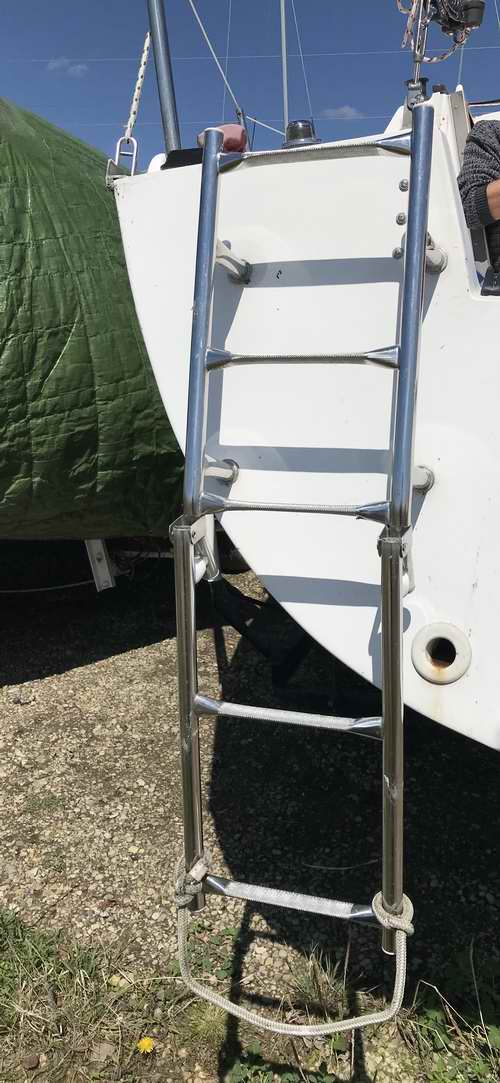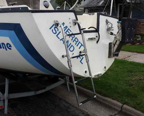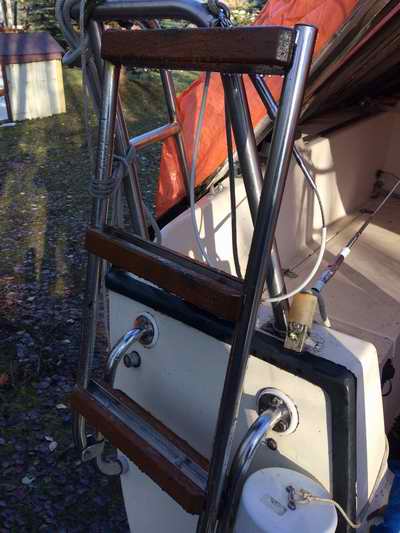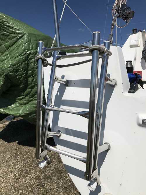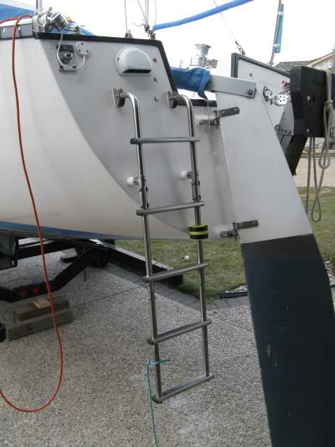 NOTE - As good as this ladder is, it can be improved by making it slightly narrower and longer so it can be installed closer to the center line and a bit lower to make it easier to climb on board. As long as the rudder does not touch it.