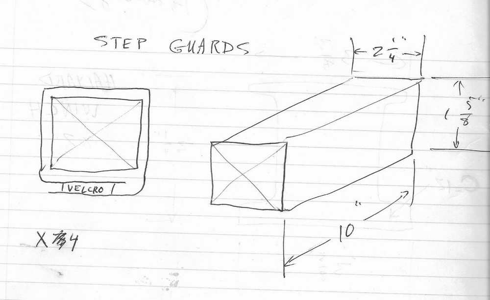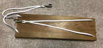 This step is simple to make and so effective to use because it cuts the 33" freeboard height in half, eliminating the sometimes desperate crawl over the gunwale. When you are alongside in your dinghy, just clip the two hooks over the toe rail and step aboard in a civilized manner. No more desperate effort to grab the winch on the cabin top or companionway rail to pull yourself aboard. After you use it once you'll discover it is easier and quicker to use than the transom boarding ladder. I store my step in the dinghy to get on the boat and return it there once I'm aboard. I find it of little use to step off the boat, preferring instead to slide off the gunwale into the dinghy. This design is very compact and floats.