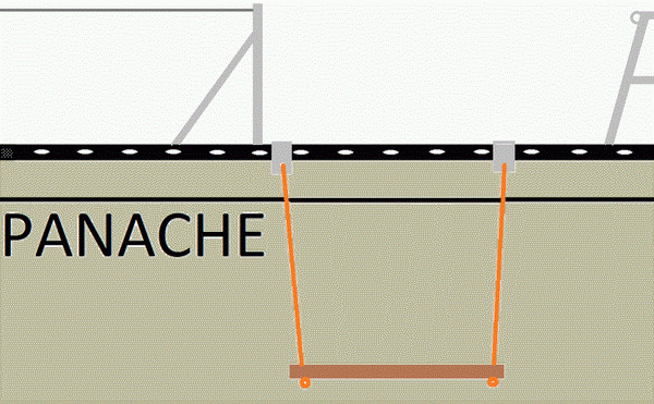 As good as the Cetol is, I also keep the steps covered with Sunbrella to protect against water, UV and ice damage. A much superior solution. Click here for a cloth pattern to cover the wood steps. The ends should be left open to ventilate the wood rung. In 2023 I added a rope loop of 5/8" line to the bottom rung to assist with that all important first step, lifting your body out of the water. The rope loop hangs outside the ladder so it automatically drops when the ladder is deployed. Don't make this loop too long as your shin will pay the price when your foot slides under the transom. Slippery blood all over the cockpit is frowned upon.