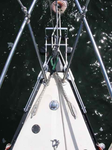 A bow sprint is a great place to attach the tack of a cruising spinnaker