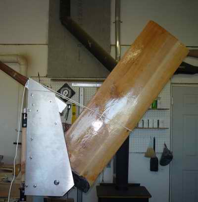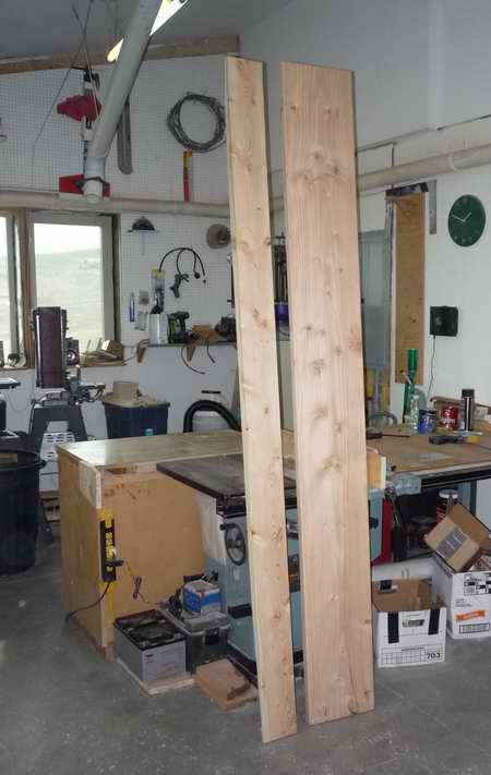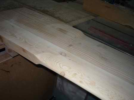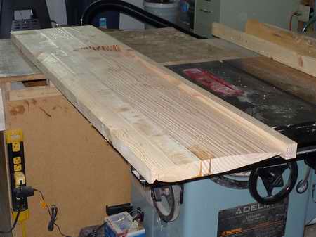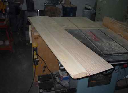 When I bought Knotless II she came with a lovely fixed rudder attached to the transom. I’m not sure the reason for having a fixed rudder on a boat with a swing keel, but I was pretty sure that if I floated into shallow water and bounced the keel over something on the bottom, bad things would happen to the rudder, the transom, or both. So, a kick up rudder was in order. Using the information in Tech Tips B09 and B10 I went to work in the Fall of 2015 to make a rudder that would tip up automatically when (not if) I entered shallow water unexpectedly. It turned out to be a pretty major undertaking but was both enjoyable during construction and satisfying now that I’m sailing with the new rudder. I started with a dry (2x14)" about 6' long, straight grain without run out and tight knots (no pun intended). There are no (2x14)" boards available where I live in Northern Idaho so I trimmed and glued together a (2x6)" and a (2x10)". After the epoxy cured I hogged out the basic shape of the foil on my table saw. My adjustable dado blade was set to about ½" wide and angled to about 70 for the trailing part of the foil. I guestimated the angle for the leading edge of the foil that is roughly based on the NADA 0020 shape.
