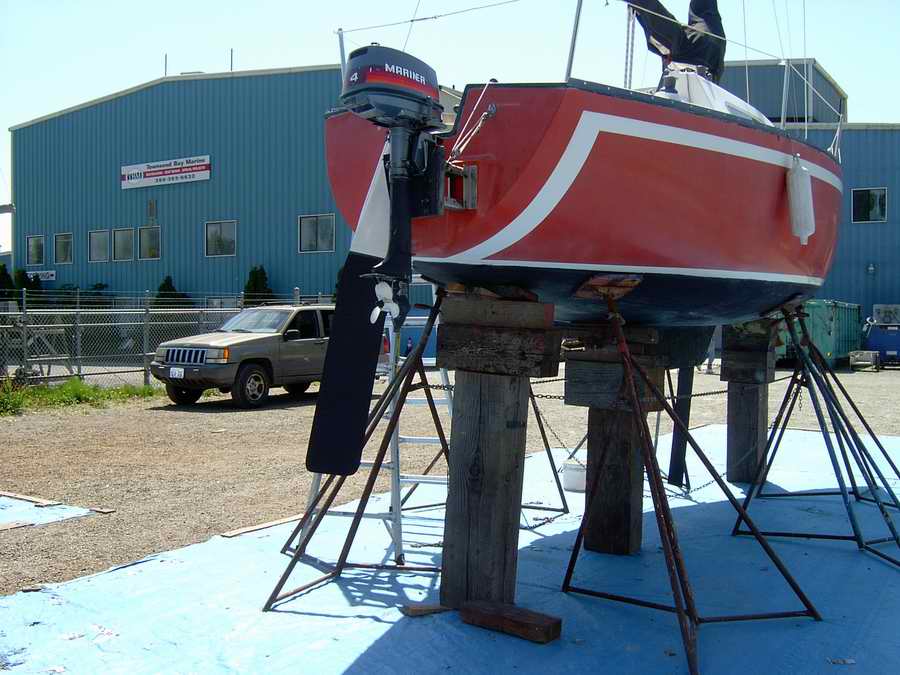 Blocked up on the hard so the center board can hang vertical