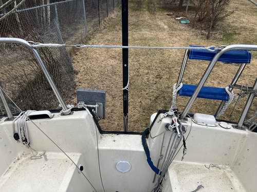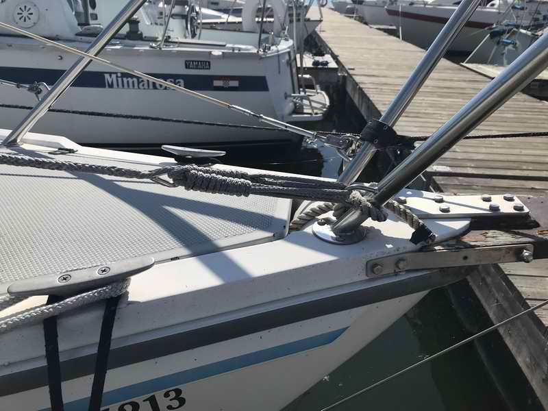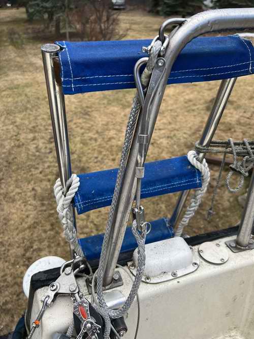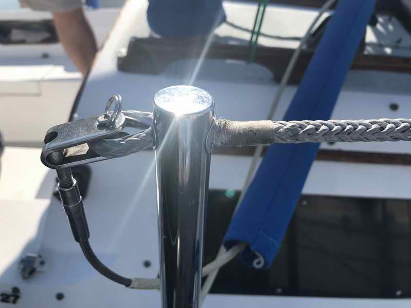 - The forward lifeline was always permanently tensioned when on the water and released only for winter storage.