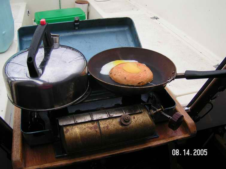 Sp what's cooking? Egg in a nest and dish water. Lightly butter a slice of bread that has a hole in it or use a bagel. Place it on a hot frying pan. Let the bread heat for about 30 seconds then crack an egg into the hole. Let it fry as you normally would with an egg. Flip it once and eat. This is toast and egg all once that doesn't get cold when served on a plate or eaten as finger food. STOVE SAFETY - The safest way to