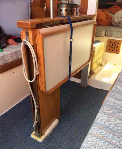 removed it to lighten the boat for racing and later built two upper cabinets for cruising. When the boat was sold