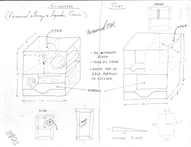 original pencil sketch for building the speaker enclosures. Please verify the measurements for your installation.