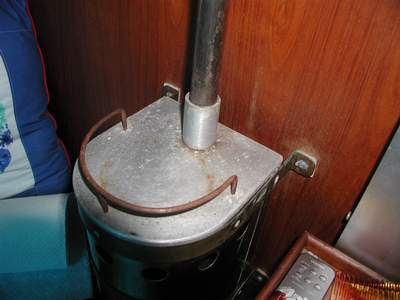 purpose made cabin heater with a chimney to vent dangerous exhaust