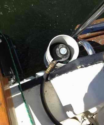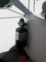 the propane hose fittings to go through. - Secure the cap to the hull with a short line so you can't drop it