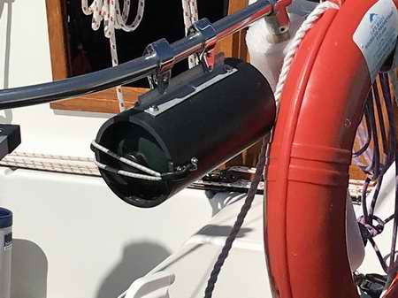 overboard. - The exposed propane hose is covered with Sunbrella to protect it from UV