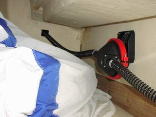 WINTER PREPARATION - Its not unusual to have nuisance water in the bilge compartments from rain, deck leaks, knot meter extractions, water tank, etc. But once the boat is on the trailer all of it must be wiped dry for winter freeze. My experience is that what little water is left evaporates quite quickly if the bow, stern and settee compartments are left open at least a week prior to freeze up. Once the boat is bone dry it can survive winter freezing quite nicely. I passively vent these areas to promote drying prior to winter but sometimes Jack Frost arrives sooner than expected, in which case I'm wiping up slush. It demonstrates another reason for having bilge pumps to keep the bilges dry during the season. See Tech Tip A11. BILGE LOCATION CONSIDERATIONS - It's too bad that the SJ23 doesn't have even a tiny bilge below the cabin sole and above the keel for water to accumulate. This would have made the rest of the hull so much drier and it would be so convenient to install a single bilge pump. Since the SJ23 has many compartments due to the relatively flat bottom, the ideal arrangement is to install an electric bilge pump at the bottom of each settee and one in the port cockpit locker. The water under Panache's V-berth drains back to each settee through gaps I can't see so I see little reason to install one there. A pump in these 3 locations can take care of "nuisance" water but may also buy you extra time to motor to shallow water, a great way to prevent sinking out of sight. Perish the thought. You could also install a manual backup pump that can handle a larger volume of water using Bret's installation below.The inside of the cabin can be bailed manually with a bucket, dumping water into the cockpit. The port cockpit locker pump could discharge through the transom by the boarding ladder. The settee pumps could discharge through their respective hull sides or into the cockpit as I haven't figured a better place yet. Install each discharge line to a dedicated thru-hull fitting installed and sealed at cockpit seat height. This is a good compromise between minimum pumping height and still be effective while the vessel is sitting low in the water. There is no point in going higher than the bottom of the tiller slot. Ensure the discharge tubing is supported for its full length when filled with water. All these locations have relatively easy access for routine maintenance and cleaning of the pickup screens. The following are some general thoughts to consider for a bilge pump.