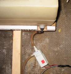 ABOUT POLYETHYLENE TANKS & FITTINGS: Most polyethylene tanks come without hose fittings unless it is a purpose made tank. So if you purchase one, fit it in the boat and determine where you want the fittings to be. Mark the spot with a felt pen and take the tank to the dealer or RV repair shop where they can "weld" the fitting to the tank. If you have a leaky fitting or want another one installed, they can do that as well. These shops have a tool that resembles an electric drill that holds the fitting while it is spun against the body of the tank. The friction created between the fitting flange and the tank melts the polyethylene on both sides. When the two surfaces become soft enough, the operator simply stops the spinning the fitting and holds the tool steady against the tank till the conglomerate mess cools and solidifies. The operator knows from experience when to stop turning. Leak fixed! One sure way to screw up a fused fitting like this is to apply side strain on it from a hose. So support the hose to eliminate all strain on the fitting.