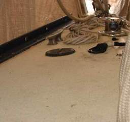DECONTAMINATE A TAINTED TANK - There is a standard sanitizing procedure for recreational vehicles (ANSI A119.2 section 10.8) that works just as well for boats. I’ve added a few details, but the bones of it comes straight from the code and have been reviewed and accepted by the U.S. Public Health Service. WINTER STORAGE - Since there are no sags to trap water in the fill or vent lines I pump the tank dry just before haul out up the ramp. The tank will be almost empty when I pull Panache up the ramp. Then at her winter parking spot I remove the drain hose and collect the last bit of water out of the tank. Lastly I blow out the remaining water through the pump, into the sink and out the hull, ready for winter freeze up. Then to protect the pump I shake the water droplets out of it and give it a quick spray of cooking oil to prevent internal corrosion. Sure a lot simpler than my previous method of removing the tank every Fall to drain it. SAILING PERFORMANCE - What came as a total surprise was the improved sailing performance with the bow weighed down with the anchor and the water tank, sailing the boat more on its lines. Later I realized the combination of the rigid shelf (acting as a grid) glued to the hull, also added stiffness to the bow. With the added weight of the drinking water plus the foam jammed between the top of the tank and the V-berth, it really helps to deaden the sound of punching through bigger waves. NOTE 1 - While much has been said about adding weight to the bow to level the boat for fast sail performance, an easy weight would be to tie a five gallon jug of water in the front of the V-berth. This will add about forty pounds to the bow and you can vary the amount of water as you need. There never seems to be enough drinking water when you are cruising anyway. Five gallons should last about four days if restricted to drinking. Fifty gallons of water should last about 5 to 7 days if the electric pump is switched off and the hand pump is used. NOTE 2