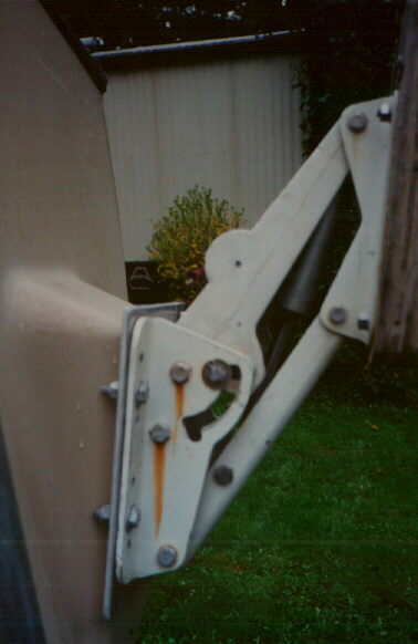 ![]() "Cut the aluminum plate to size then shape and pre-drill the holes before final assembly. The edge of the plate must be ground smooth with a hand grinder. I also recommend installing the plate to the boat first, then the bracket to the plate. Use a piece of solid hard wood and large stainless steel washers against the inside of the hull. Install the bolts with the heads on the inside and the nuts on the outside. This facilitates checking the nuts for tightness in the future. I was a little afraid that the plate might look ugly, but once it's on you don't even notice it. I also replaced all the worn pins with stainless steel for the extra security. Whatever you decide to do, bolting through the hull is a real lousy job that is described in Tech Tip D03 . At left is an image of my transition plate." Frank May.