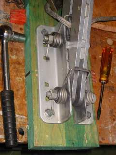 PAINTING - If you decide to paint the aluminum components, wash them first with a mild acid to remove any grease, then sanitize with acetone and finally prime the surface with a coat of zinc chromate. Zinc chromate is nasty stuff to breathe so paint outside in a mild wind (nobody downwind) and wear a mask. Flat black paint matches the toe rails but the aluminum will get very hot in the sun. I abandoned this idea, thinking that the paint will likely bung up the hinges. Anodizing them in black would have looked nice but I wanted to go sailing. The aluminum has since acquired a very acceptable patina from exposure to the lake water and it blocks further oxidation. MOUNTING