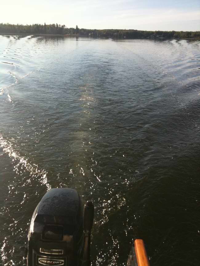 At right you can see the outboard pushing the hull at 5 knots in flat