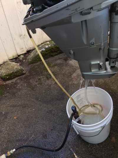 - One nice feature of flushing this way is that the flush water does not mix with the exhaust by products as most of it flows down the central outboard case. It also can be done indoors with no fumes.