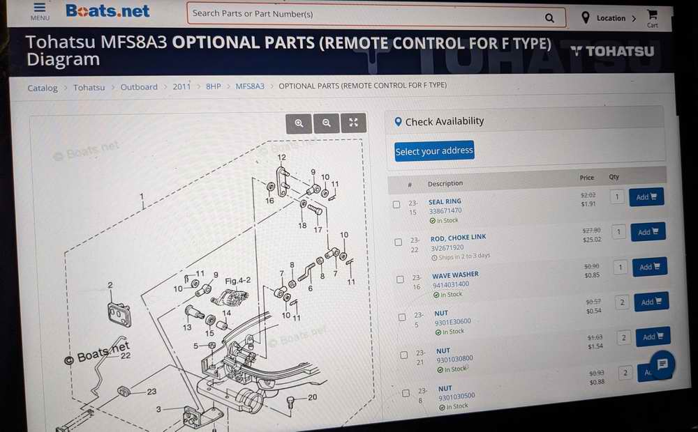 Continuing from Tech Tip D07 (Gear Shift Extender) here are a couple of Tohatsu outboards equipped with remote control of throttle and gear shift to the cockpit. Talk about convenient when motoring in or out of a slip.