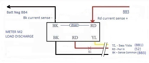 M2 (Load Discharge) - This volt sense is wired to the switched power buss BB1, to measure house battery voltage.