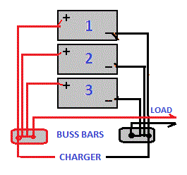 equally, ensuring optimum performance and long life. Equal wire length (resistance) is especially important for Li batteries that have a low internal resistance. When the time comes to start the engine from the house batteries you can be assured of having enough power to start the engine.