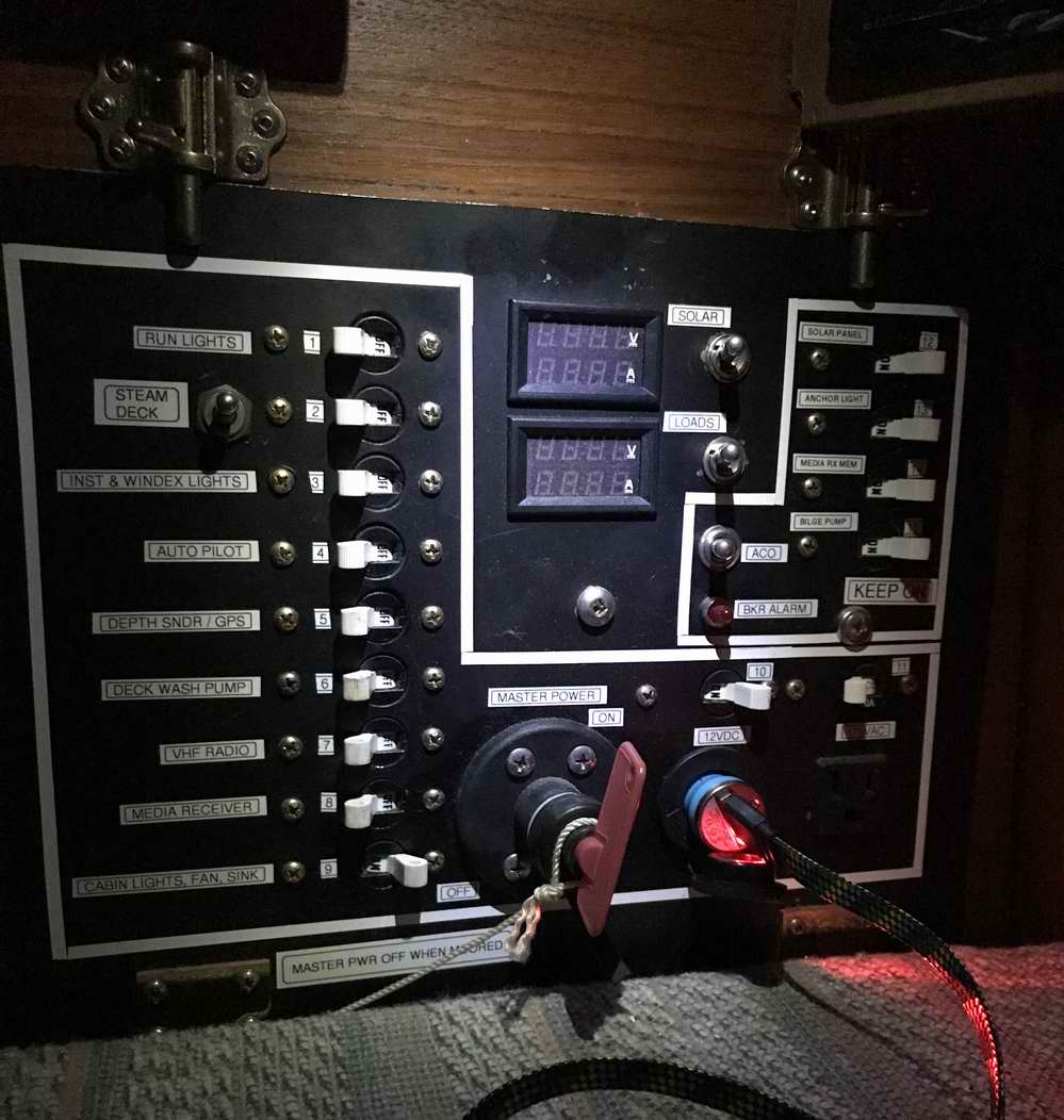 NOTE - The battery voltage on M2 may show up to 21V when the outboard generator is charging. This is not a fault. These meters show peak voltage, not RMS and the outboard generator sends pulsing DC power to the battery.