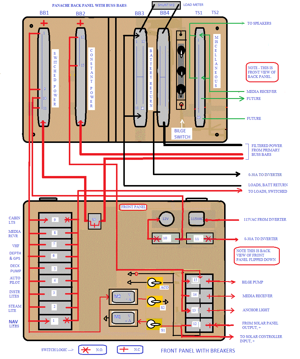 (e.g.: battery, outboard generator, breaker panel, etc.) If the copper buss bar is