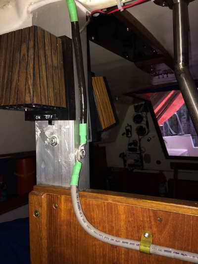 PANACHE BONDING INSTALLATION - As stated previously, it is next to impossible to install a lightning ground that can conduct a direct strike to ground on a sail boat, completely protecting the crew and boat. However, it is possible to install a grounding system that can neutralize the charge in the rigging thereby reducing the chances of the boat becoming a strike zone. A system of this type is estimated to protect you 80% of the time which is obviously safer than installing nothing. Now we're talking. (I bonded the mast to the steel swing keel on my previous Venture 222 and the rigging never glowed with St. Elmo's fire after that, proving that it works). Bonding I installed on Panache: