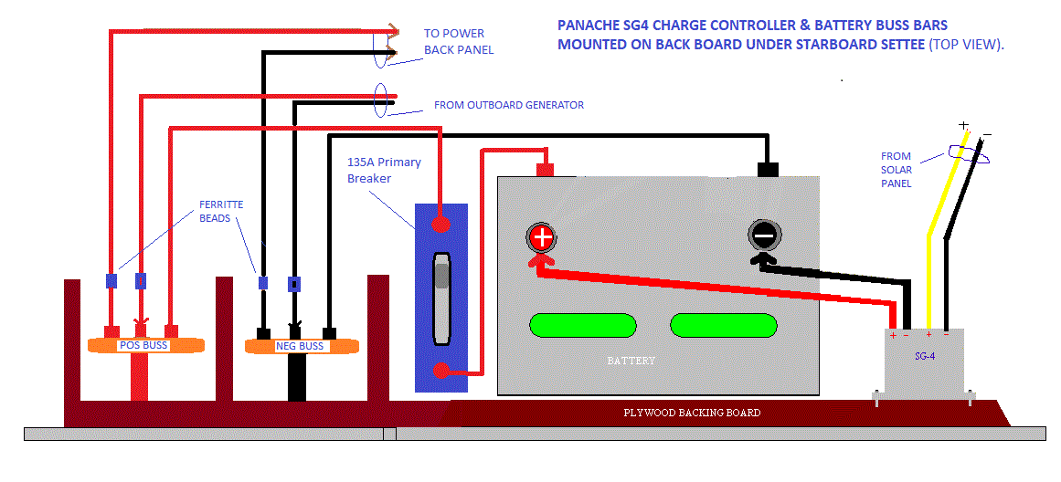 CONNECTOR ASSEMBLY - To increase the current handling capacity of the connector I doubled up on the pins by splitting the wiring between them. Two pins conduct the positive current and the other two pins conduct the negative. I used oversize stranded wire, stripping the insulation back about 3/4" and forming two parallel strands to slide into the receiving holes of the pins. Make ABSOLUTELY certain you have the same polarity on the jack (hull) and the plug (engine). If you cross wires on any of them you will have a very dangerous electrical short to the battery. So disconnect the cables connected to the battery and use an ohmmeter to confirm continuity. Positive to positive and negative to negative with NO shorts between. Finally, connect the cable to the battery and using the voltmeter read the correct polarity on the hull connector. The pins in the hull mount connector are set in a Bakelite barrel that is locked to the housing with a small set screw. To water proof this I disassembled the connector and coated the Bakelite barrel with Sikaflex. Then slid it back into the connector housing, screwed the set screw in place and let the Sikaflex cure. This will likely be a mess to undo if maintenance is required but my solution is to buy another connector since they are relatively inexpensive. INSTALLATION CONSIDERATIONS