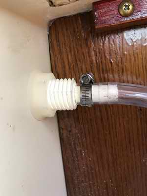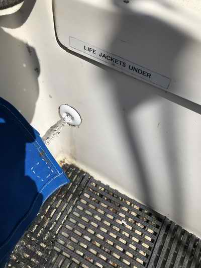 boat afloat till you get to shallow water. Beach it if you have to! A SJ23 does not have a central bilge where all water can flow to and be conveniently pumped out of. Too bad. Instead it has 2 settees with a shallow bilge under each plus a cockpit locker. The water under the forward berth flows into the lowest settee bilge determined by which way the hull leans. For this reason 3 pumps are required; one in each settee bilge and another in the port cockpit locker. Panache's portable deck wash pump could be considered as the fourth pump for the cabin. The following points have