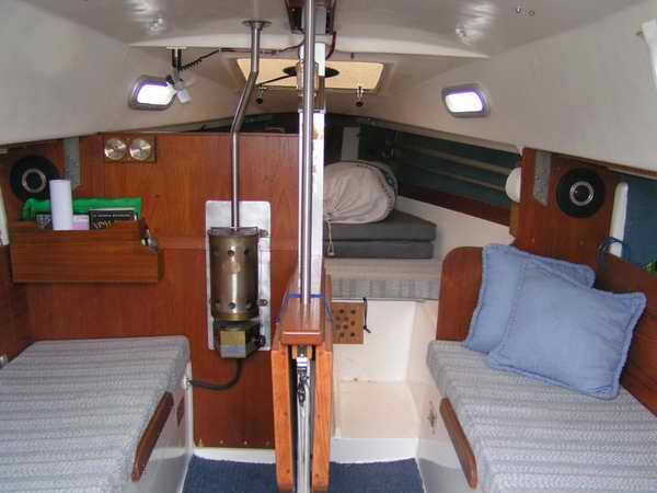 facing towards the cabin in poor man's quadraphonic style for optimum