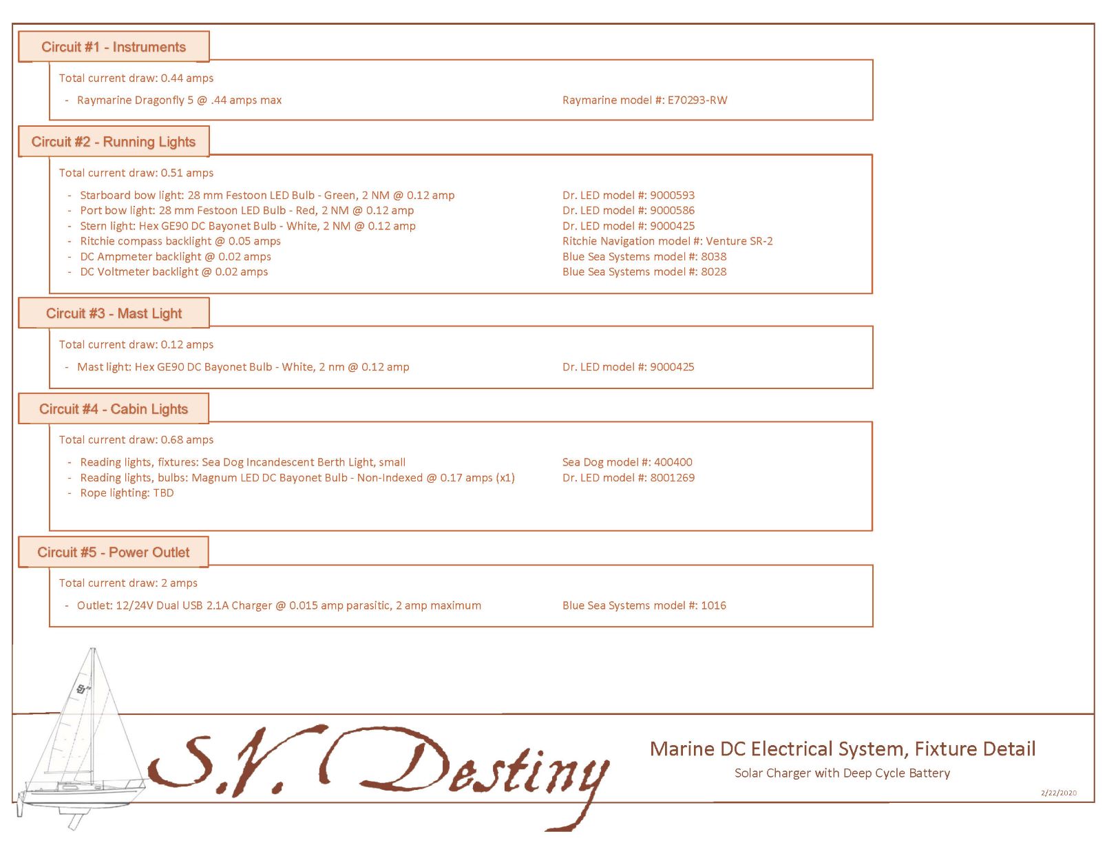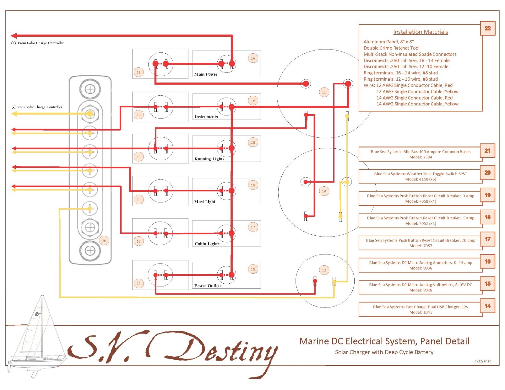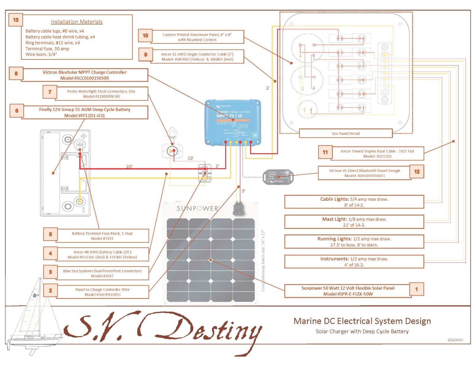 After a full season of using Destiny with the new electrical system, I can say that I have no complaints or problems. Everything works as intended and we have all the power we need. The USB jack in the solar panel is handy to a charge a cell phone, Bluetooth speaker or our handheld VHF radio. |