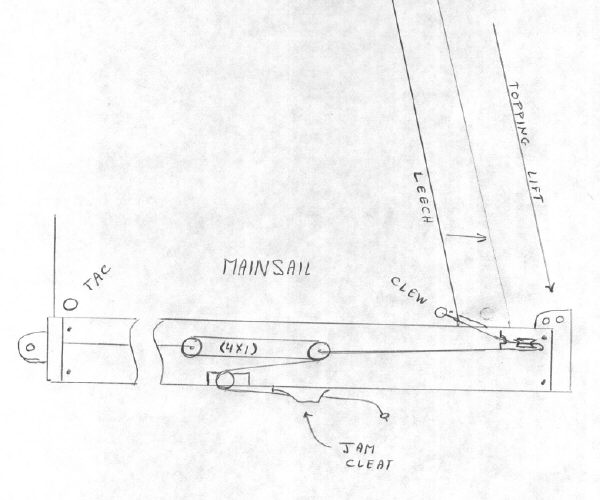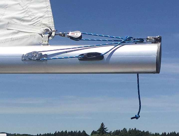 installed the exit block on the side of the boom for a simple installation. The line then loops through the clew and back to